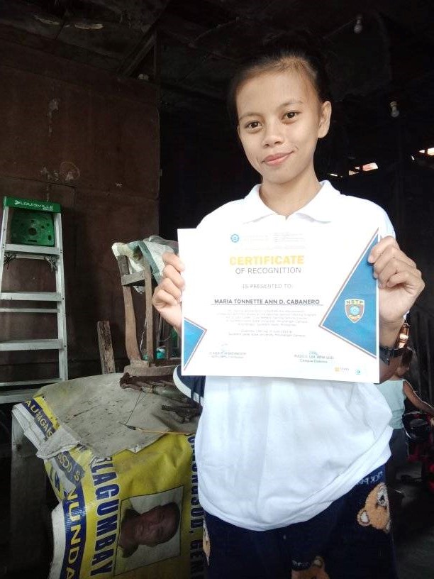 The AMF extends scholarships to selected individuals from impoverished regions of the Philippines who have demonstrated the desire to get an education and leave poverty behind. Seen here is Maria Tonnette D. Cabanero, from Hinunangan, Southern Leyte - attending Southern Leyte State University's Agricultural Program.