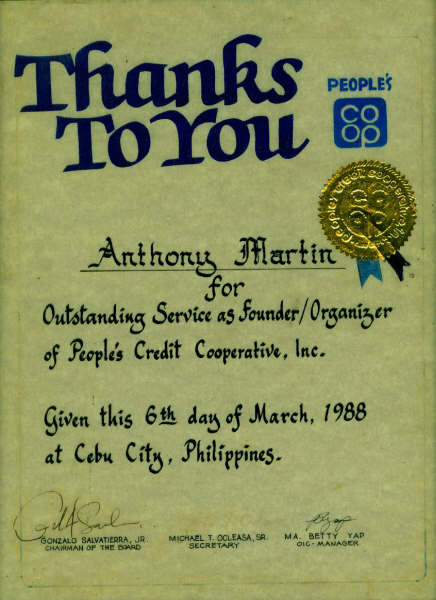 Plaques of Appreciation received by Tony Martin from Credit Unions in the Philippines...