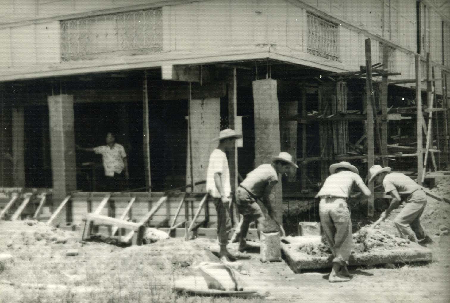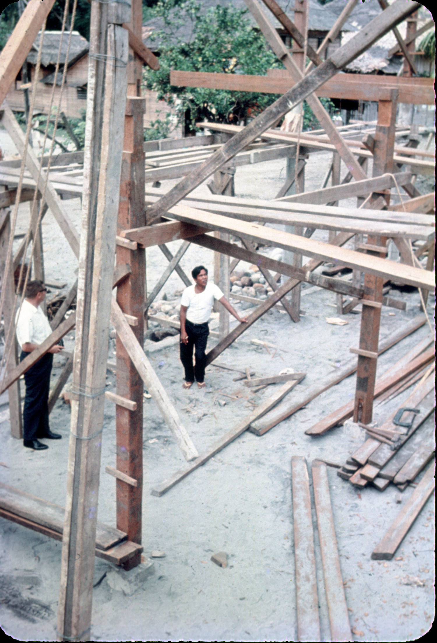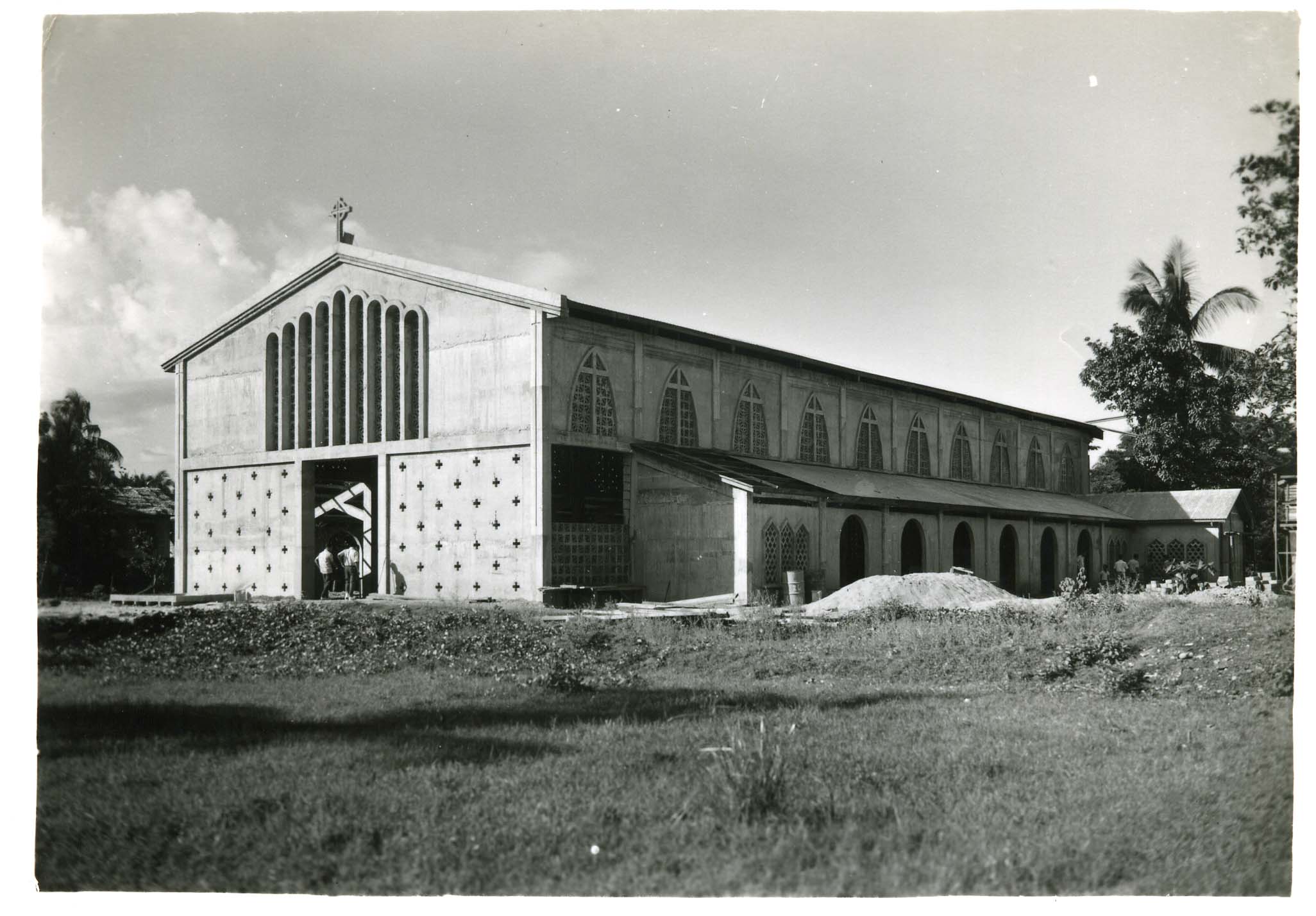 The only color photograph of the construction of the Hinundayan Church. Tony Martin is seen on the lower left corner.