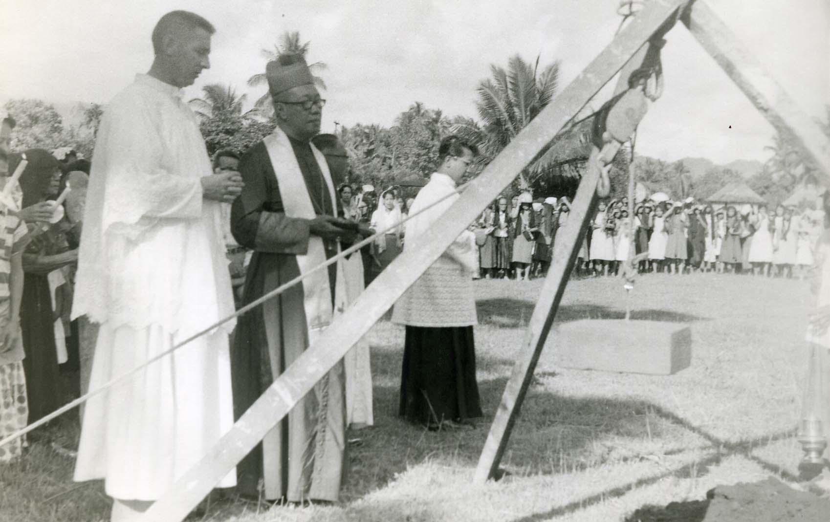 Tony Martin lays the cornerstone for a new Hinundayan church, in Southern Leyte, the Philippines.
