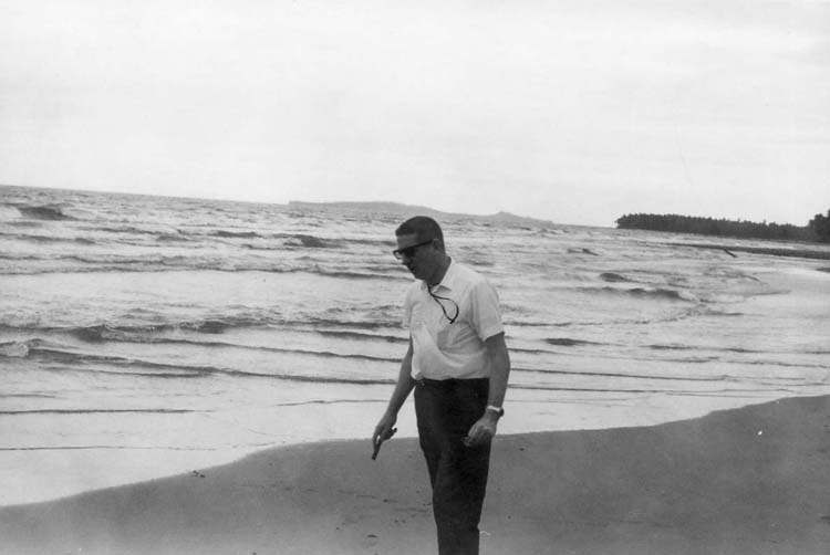 The beach; not far from his parish, of Hinundayan, Southern Leyte, the Philippines.