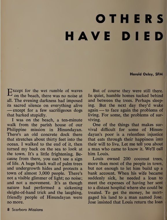"Others Have Died" - Scarboro Missions Vol 46 No 6 (June 1966) pp. 8–15